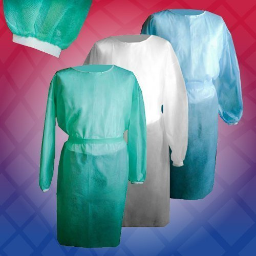Fartuch ochronny jednorazowego użytku, wiązany na troki w talii i na szyi.
