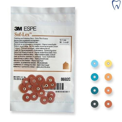 Czytelne oznaczenie kolorami poszczególnych gradacji ścierniwa krążków, od zgrubnych do superdrobnoziarnistych, ułatwia zachowanie właściwej kolejności. Szybki system wymiany krążków (Pop-on/off) ułatwia opracowanie różnych powierzchni wypełnienia. Duży wybór grubości i giętkości oraz dwie średnice -13 mm i 9 mm - umożliwiają zastosowanie krążków przy różnych wskazaniach. Optymalna powierzchnia pracująca.