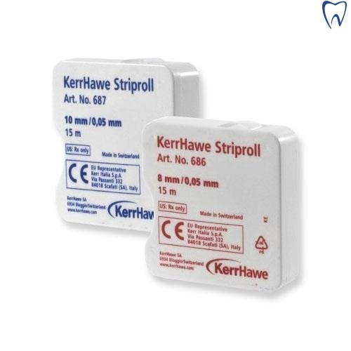 Hawe Striproll to poliestrowe paski o grubości 0,5 mm, w poręcznym dozowniku, przeznaczone do wypełnień w zębach przednich i bocznych. Dostępne są dwa rodzaje pasków: przezroczyste i niebieskie.